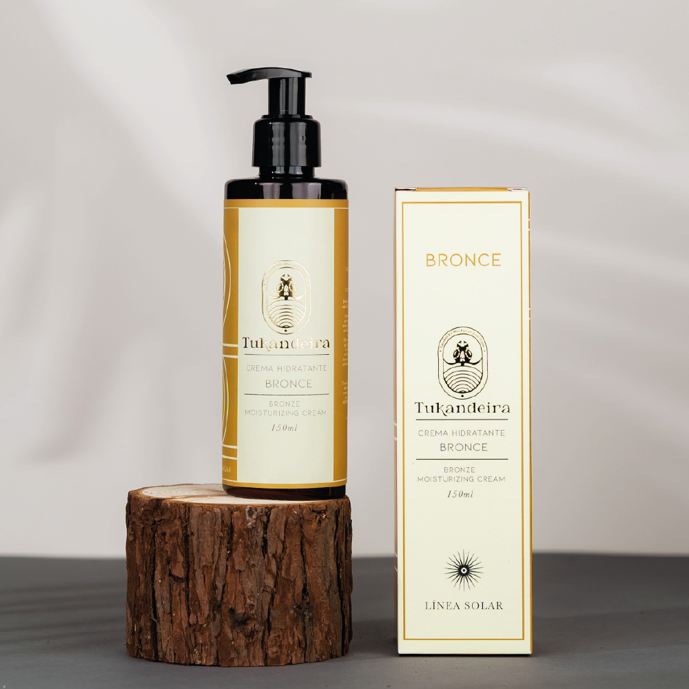 CREMA GEL HIDRATANTE BRONCE TUKANDEIRA La Crema hidratante Bronce es un producto innovador diseñado para proporcionar un efecto de piel bronceada de manera natural, sin ser un bronceador. Su fórmula exclusiva ofrece un tono dorado y luminoso, realzando el color natural de la piel para un acabado uniforme y radiante, ideal para quienes desean un aspecto bronceado en cualquier época del año, sin comprometer la salud de la piel.